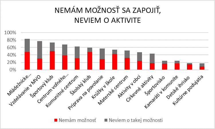 Podľa koordinátorky podpory rodinám v Platforme rodín Moniky Fričovej bola dôležitým faktorom, ktorí ovplyvnil výslednú mieru začlenenia detí a mládeže so zdravotným znevýhodnením, nedostupnosť inkluzívnych aktivít, kde by sa mohli zapojiť. „Priemerne až 51 percent respondentov nemali možnosť sa zapojiť do spoločných aktivít a/alebo sa nezapojili, pretože o nich nevedeli,“ uviedla.