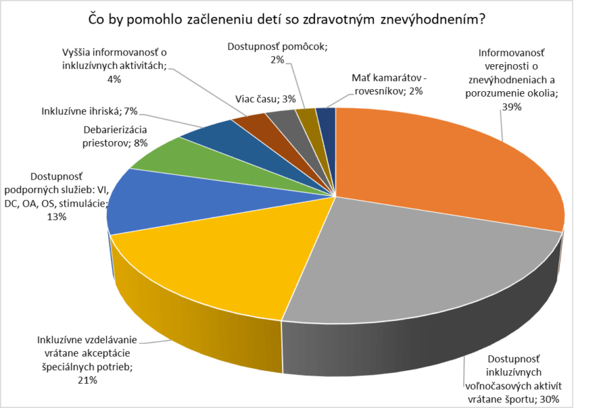 Z prieskumu vyplynulo, že 39 percent opýtaných si myslí, že k lepšiemu začleneniu takýchto detí by pomohla lepšia informovanosť o živote ľudí so zdravotným znevýhodnením.