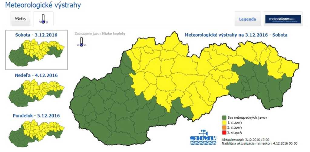 Takmer na celom území Slovenskej republiky platí naďalej výstraha 1. stupňa pred silným vetrom, ktorú vydal Slovenský hydrometeorologický úrad (SHMÚ). Najväčšie riziko je na západnom Slovensku a na juhu východného Slovenska. Hasičský a záchranný zbor preto očakáva nárast počtu výjazdov.