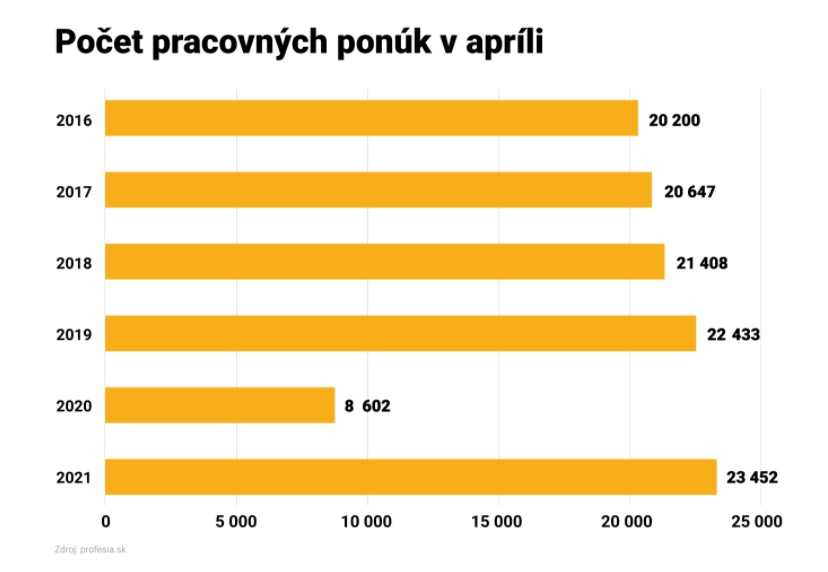 Oproti minulému roku stúpol počet inzerátov na takmer trojnásobok. Apríl 2020 bol po príchode pandémie na Slovensko mesiacom s najnižším počtom pracovných ponúk.