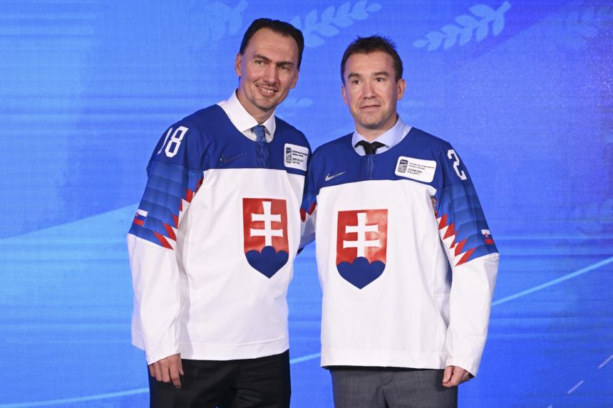 Na snímke bývalých útočníkov slovenskej hokejovej reprezentácie Miroslava Šatana (vľavo) a Žigmunda Pálffyho (vpravo) uviedli do Siene slávy Medzinárodnej hokejovej federácie. ZDROJ:TASR