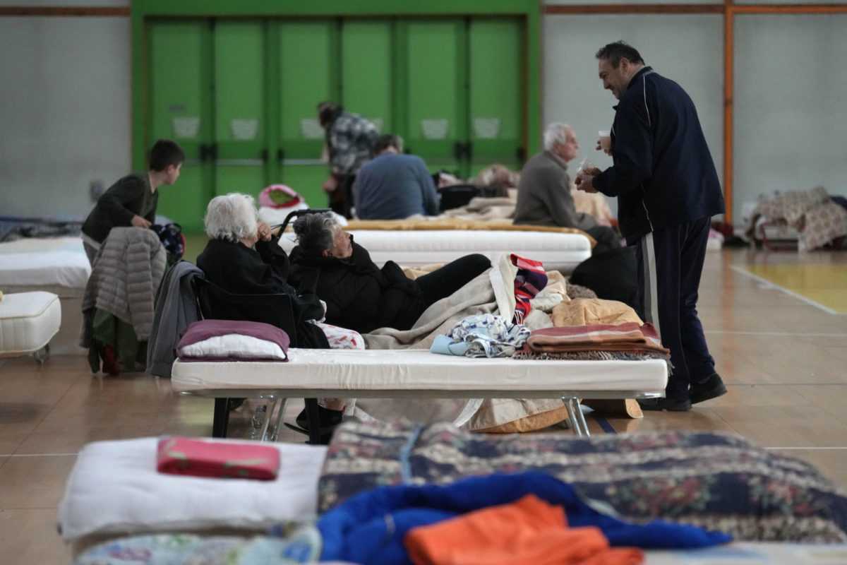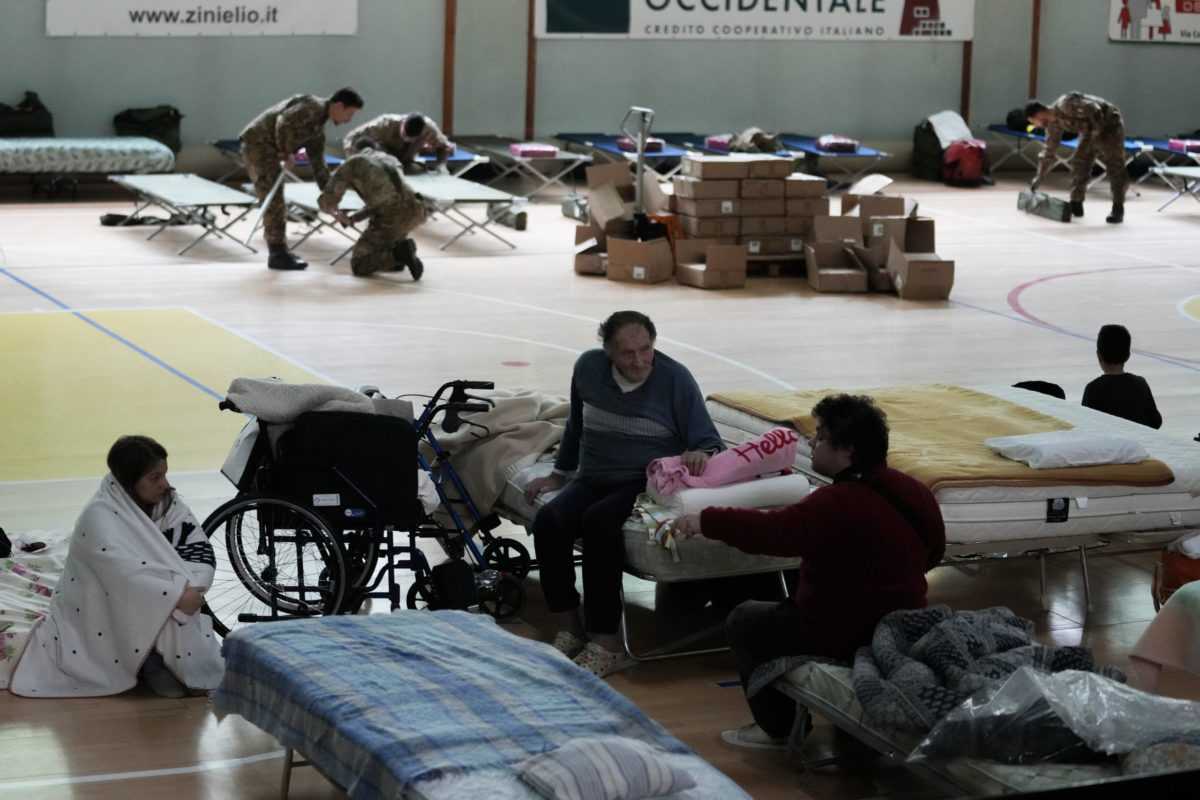 Na snímke evakuovaní obyvatelia, ktorí našli dočasný domov v miestnej telocvični gymnázia v zaplavenej obci Castel Bolognese.