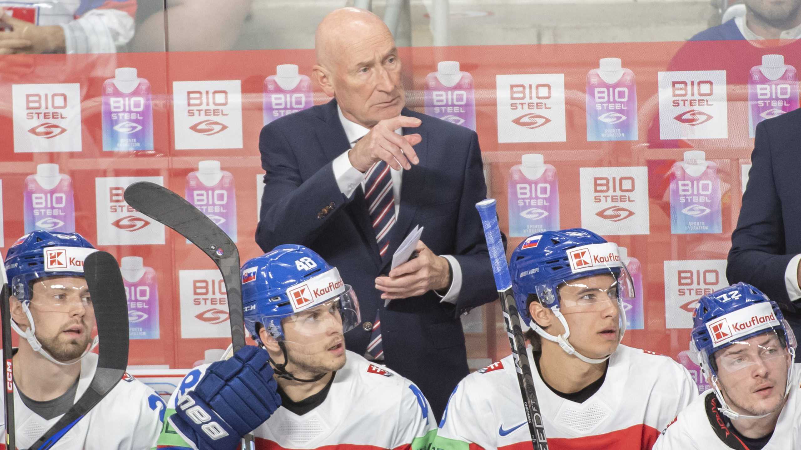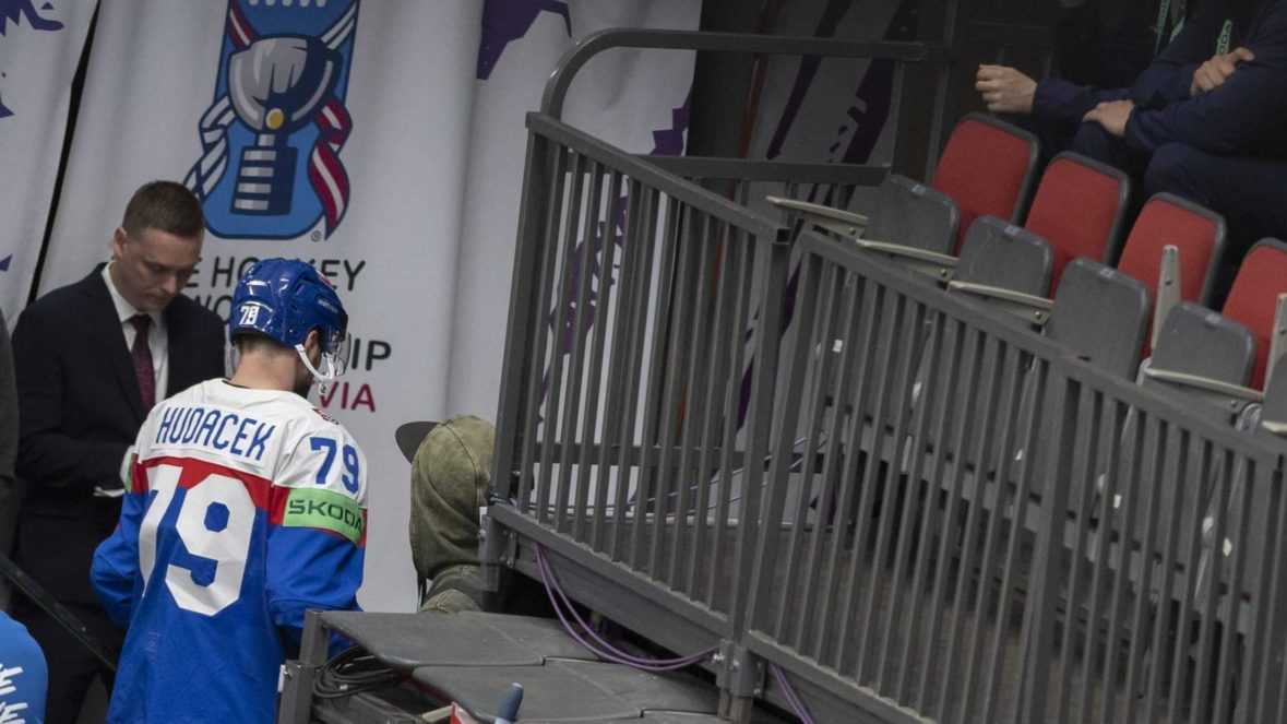 Šimon Nemec v zápase s Kanadou na MS 2023 v Rige.