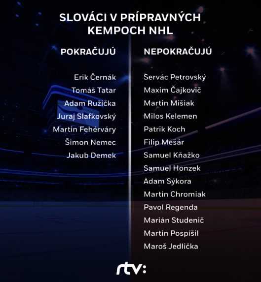 Do štartu novej sezóny NHL ostávajú už len tri dni (10. 10.) a zámorské celky pomaly finišujú s prípravou a kreujú menoslov hráčov, ktorým dajú v úvode ročníka príležitosť. V hlavných tréningových kempoch malo na začiatku Slovensko 21-násobné zastúpenie. To sa podľa očakávaní postupne okresalo a v hre ostali už len poslední statoční.