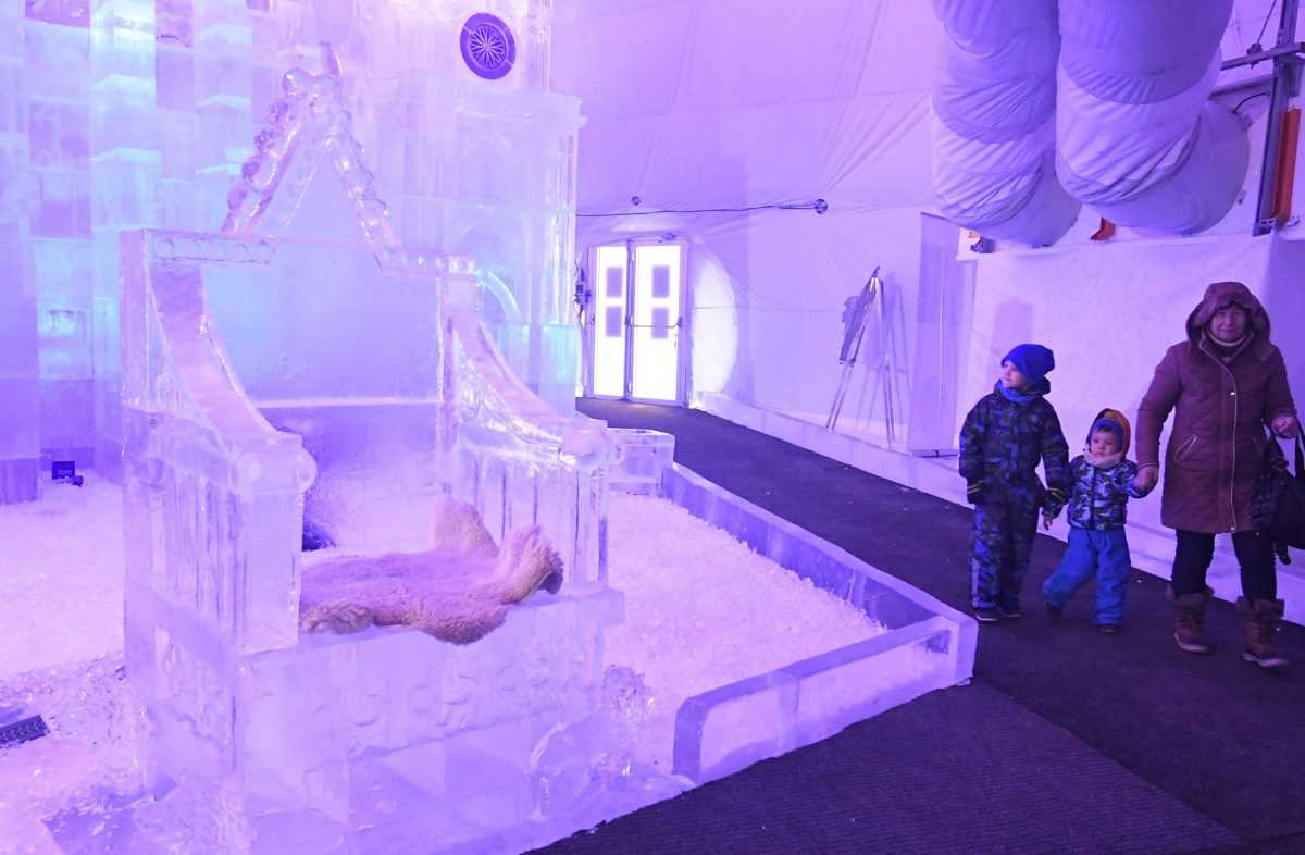 Návštevníci ľadovej výstavy.