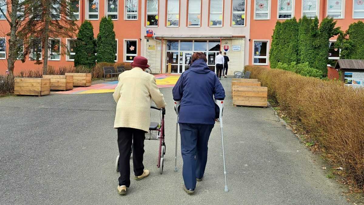 101-ročná Méta Eleonóra Zacharová na ceste do volebnej miestnosti.