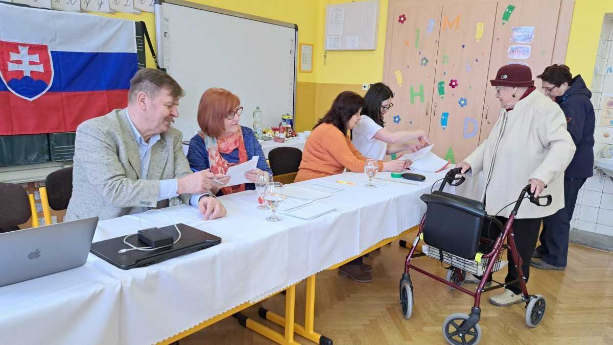 Na snímke 101-ročná Méta Eleonóra Zacharová vo volebnej miestnosti.