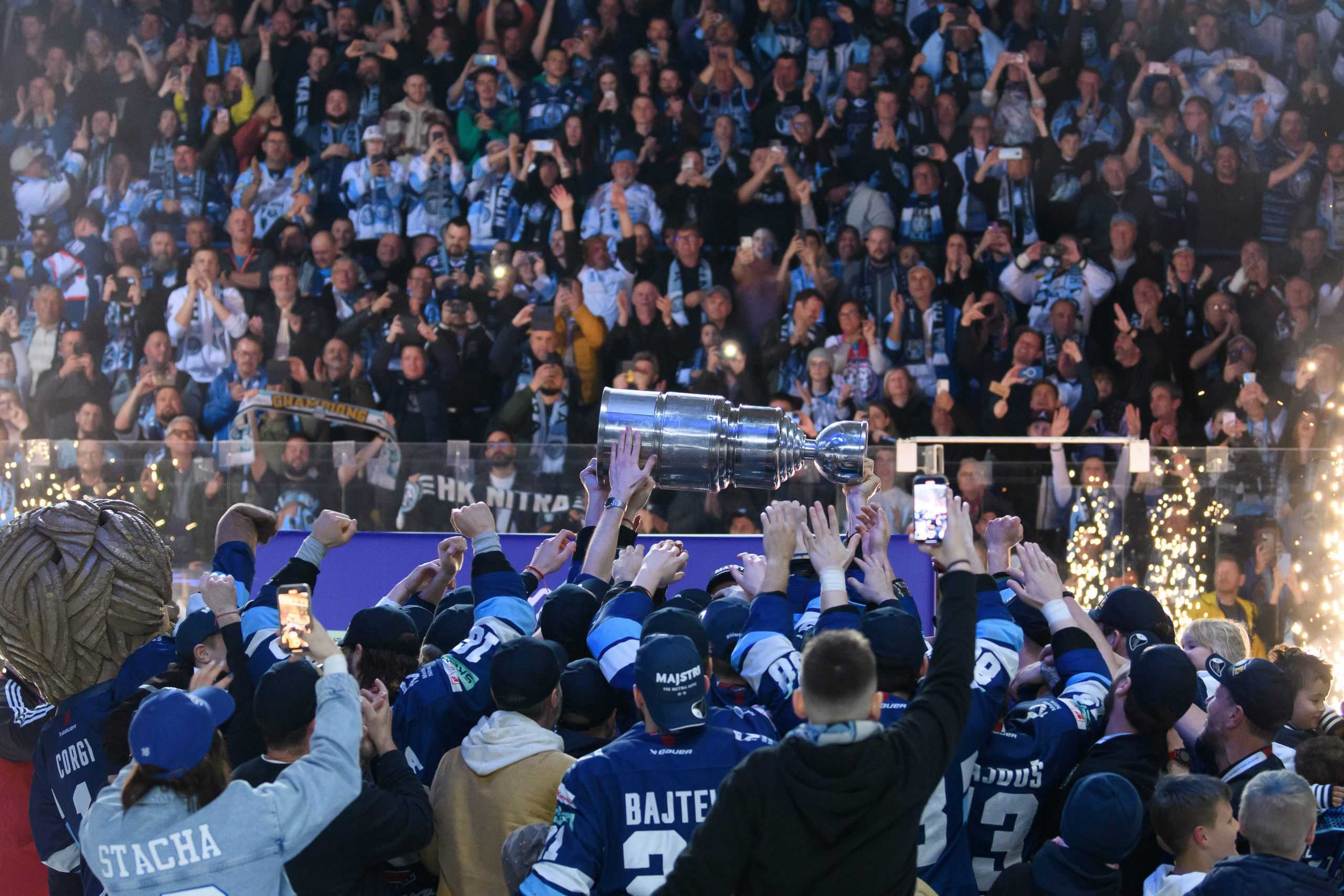 Hokejisti Nitry sa tešia z majstrovského titulu.