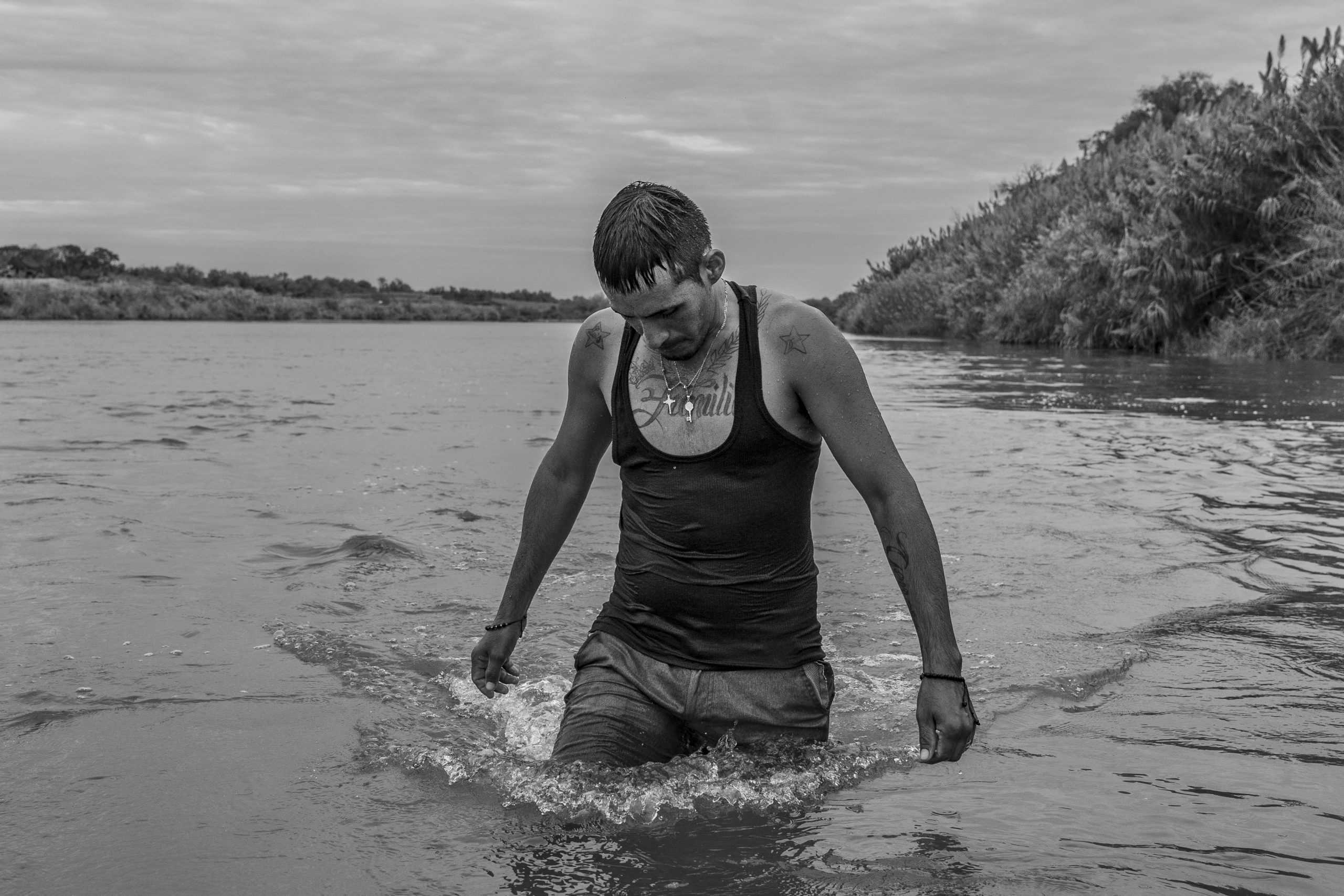 Carlos Mendoza z Venezuely prekračuje rieku Rio Grande, aby požiadal o azyl v USA.