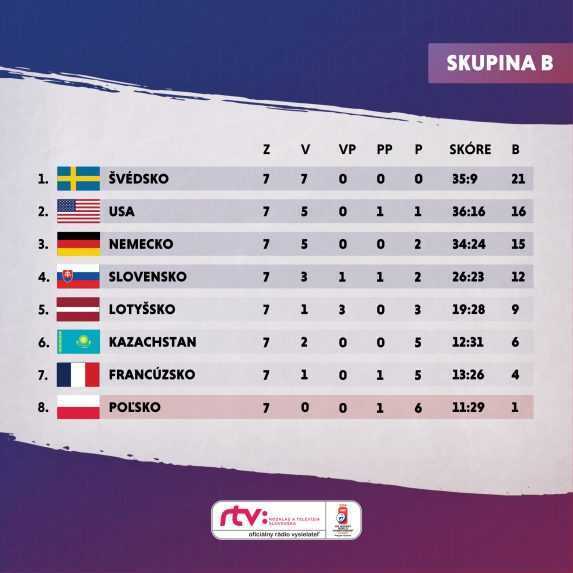 Slovensko-kanadský štvrťfinálový duel určili poobedňajšie zápasy. USA zmarilo lotyšské šance na postup, čo pre Slovensko znamenalo štvrté miesto v ostravskej B-skupine. V pražskej A-skupine zas Kanada obhájila prvenstvo v súboji s Českom.