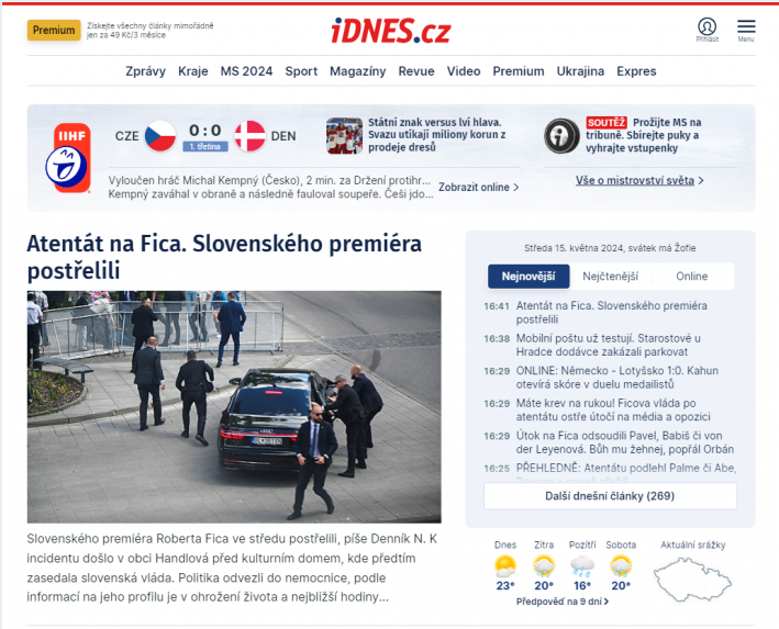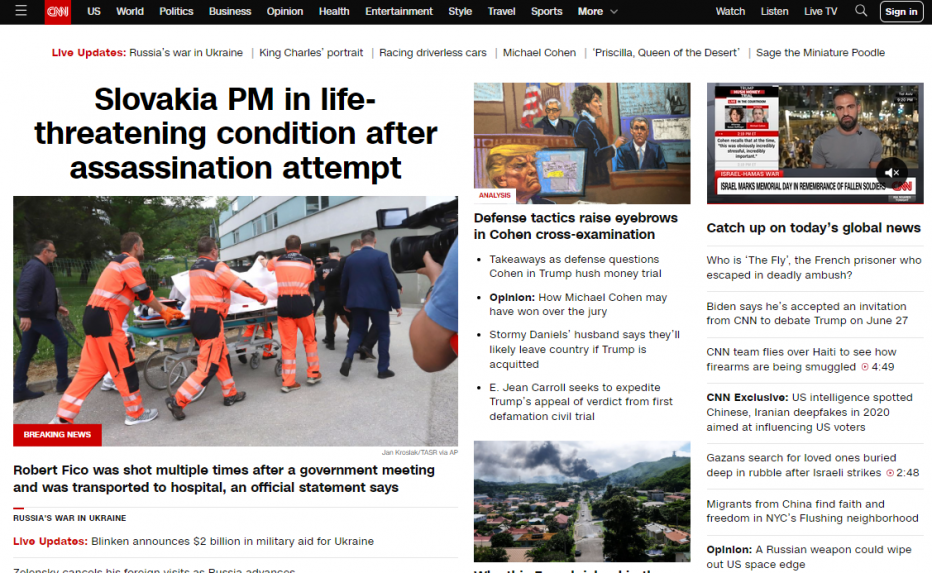 Prehľad zahraničnej tlače k atentátu na premiéra Roberta Fica. Foto: iDnes.cz, CNN