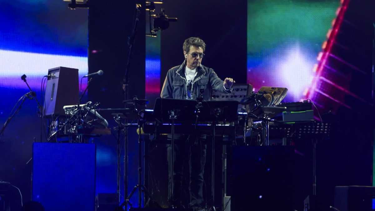 Francúzsky hudobník a skladateľ Jean-Michel Jarre počas open air koncertu s názvom Most z budúcnosti.