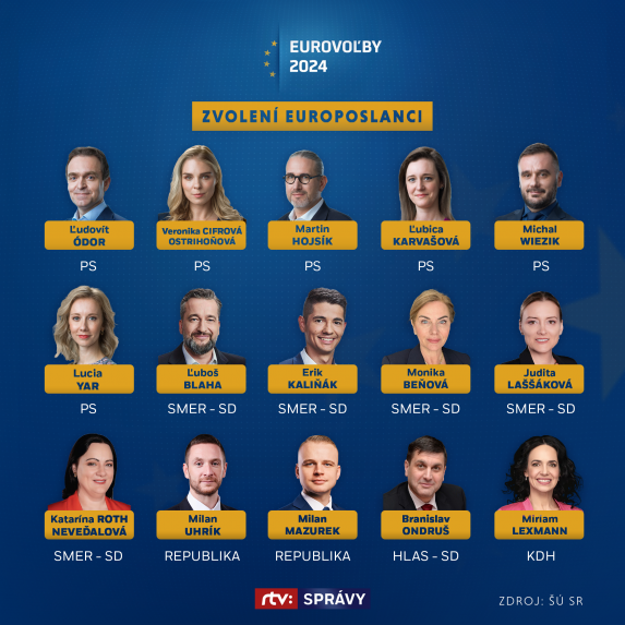 Európa si volila poslancov do Európskeho parlamentu na ďalšie päťročné volebné obdobie. Slovensko si tentokrát volilo 15 poslancov a poslankýň na funkčné obdobie 2024-2029. Zo zvolených zástupcov je sedem žien a osem mužov.