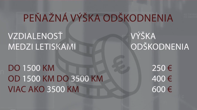 “V prípade, že lietadlo mešká viac než dve hodiny, pasažieri majú nárok na nejaké jedlo alebo nápoje. Letecká spoločnosť im dá voucher v hodnote od štyroch do 16 eur, záleží akou spoločnosťou letíte. Potom je tam nad tri hodiny nejaká finančná kompenzácia, čiže lietadlo musí meškať tri hodiny a kompenzácia je 250, 400 alebo 600 eur. Pričom na cene letenky nezáleží. Takže ak je to do 1 500 km, kompenzácia je 250 eur, ak je to medzi 1 500 až 3 500 km, kompenzácia je 400 eur a nad 3 500 km je kompenzácia 600 eur,“ vysvetlila Mareková.