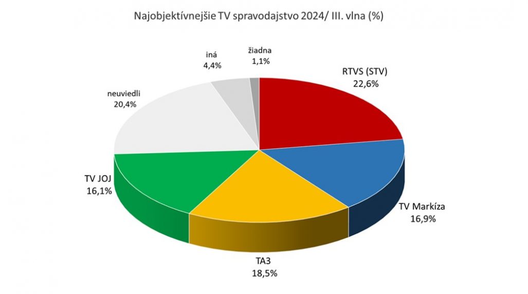 V prieskume objektívnosti televízneho spravodajstva sa na ďalších miestach umiestnili TA3 (18,5 percenta), TV Markíza (16,9 percenta) a TV JOJ (16,1 percenta).