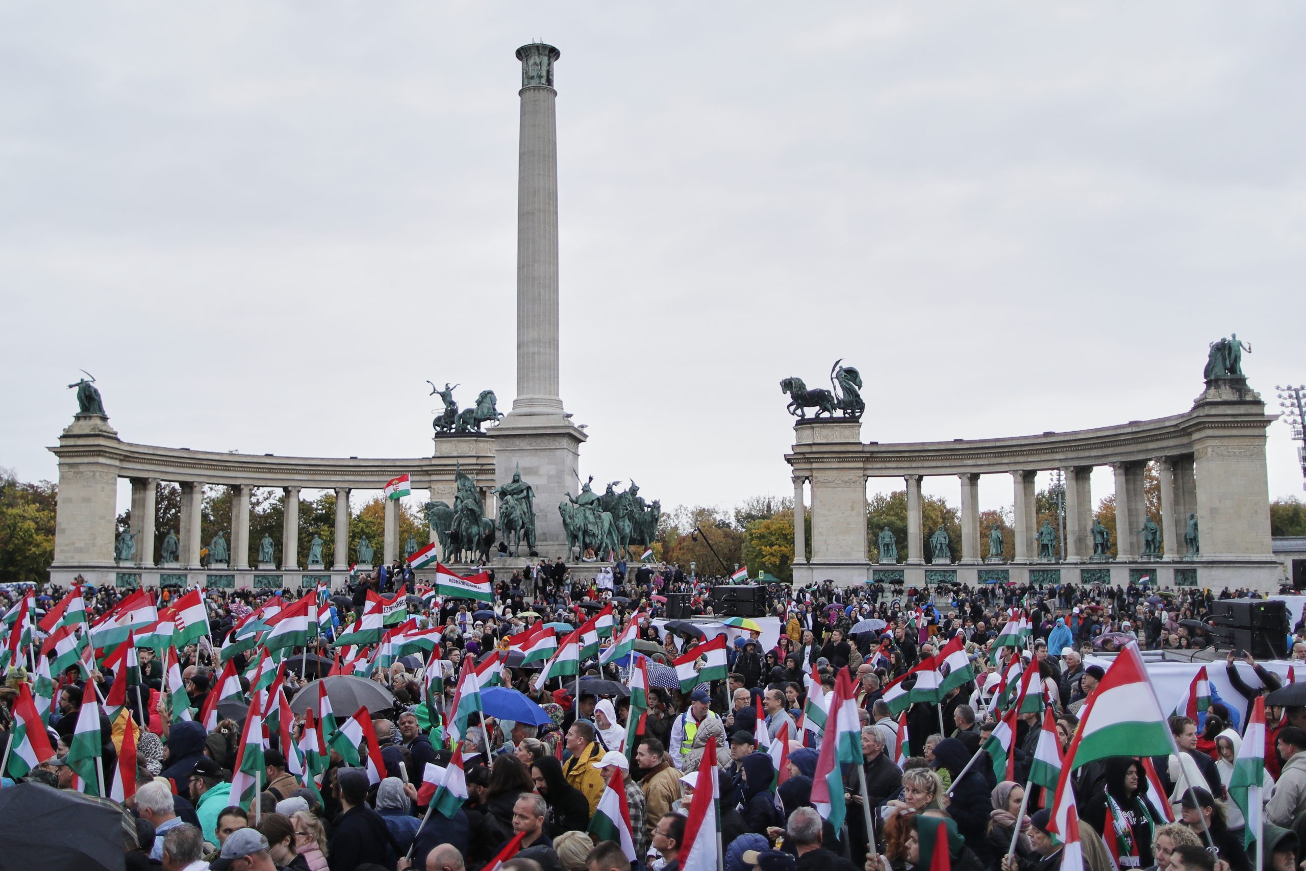 Líder opozície Péter Magyar tiež demonštroval silu svojich prívržencov, keď naplnil najväčšie Námestie hrdinov.