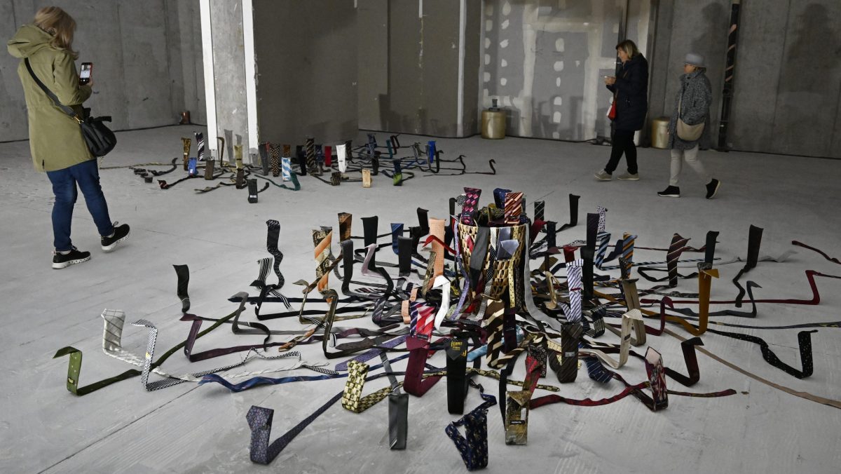 Inštalácia kravát autora Viliama Slaminku počas Bielej noci v Bratislave.