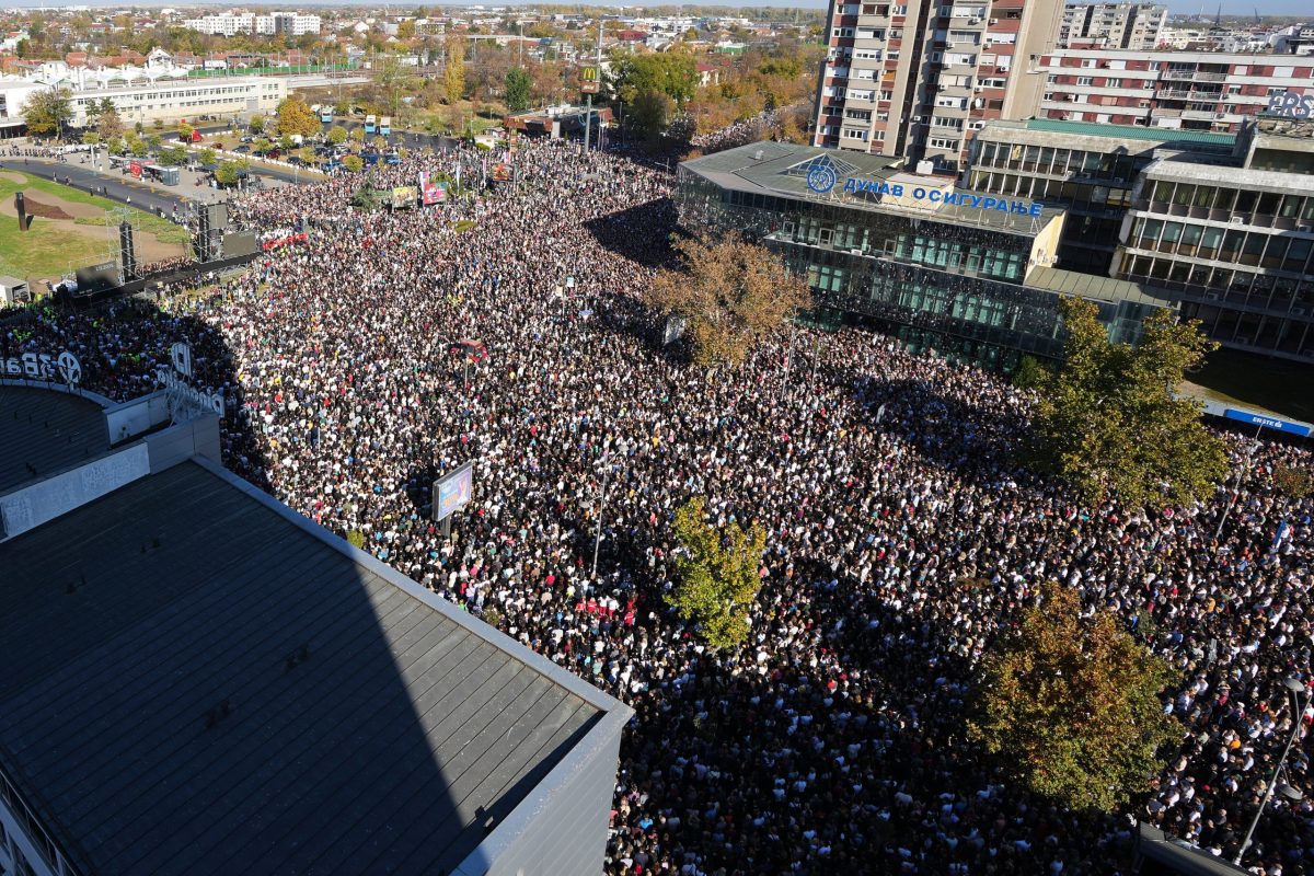 Desiatky tisíc ľudí z celého Srbska v sobotu (1. 11.) prišli v Novom Sade manifestovať a uctiť si pamiatku 16 obetí, ktoré presne pred rokom zahynuli pri zrútení strechy miestnej stanice.