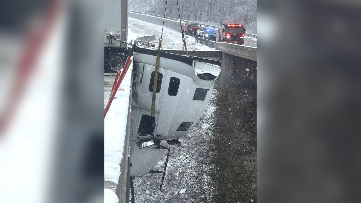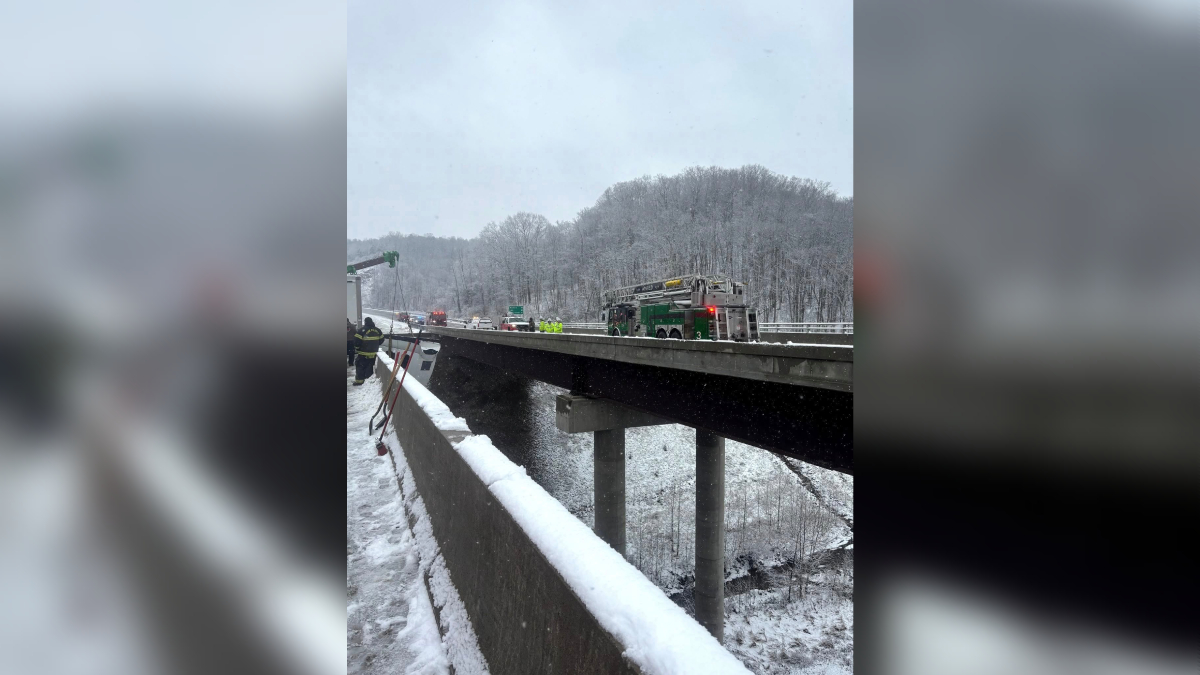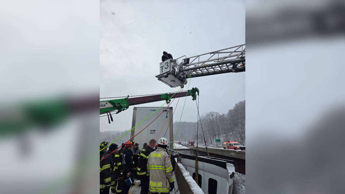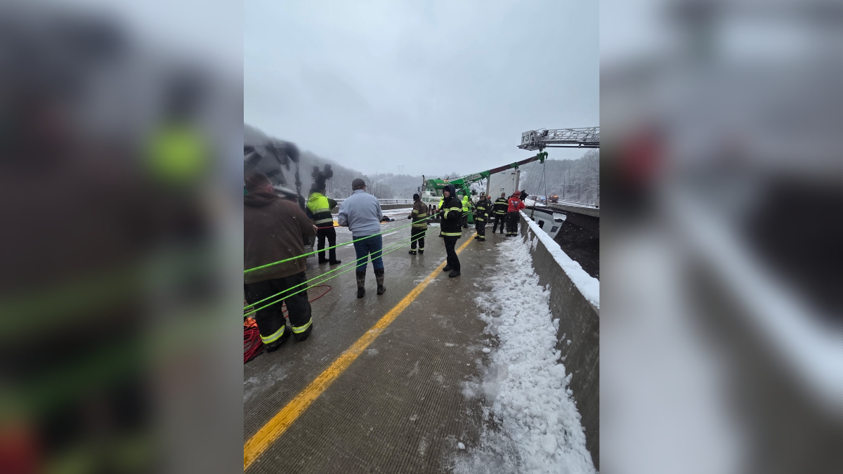 Nákladiak zostal visieť z mosta vo výške asi 30 metrov.