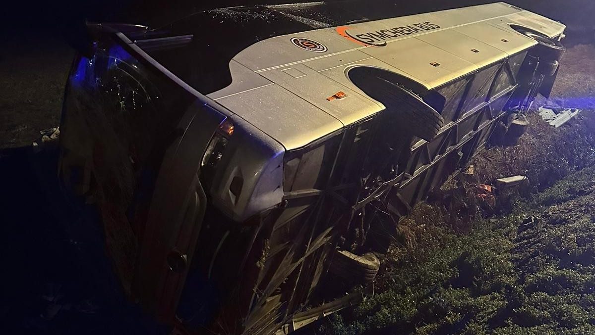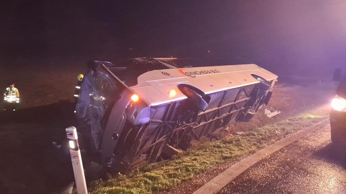 Na diaľnici D1 sa prevrátil diaľkový autobus. Pri nehode sa zranilo osem cestujúcich