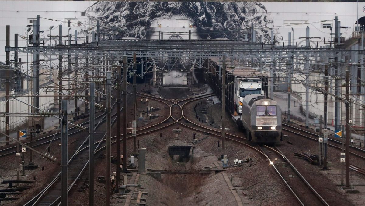 Vlak prichádzajúci z Londýna opúšťa tunel pod Lamanšským prielivom.