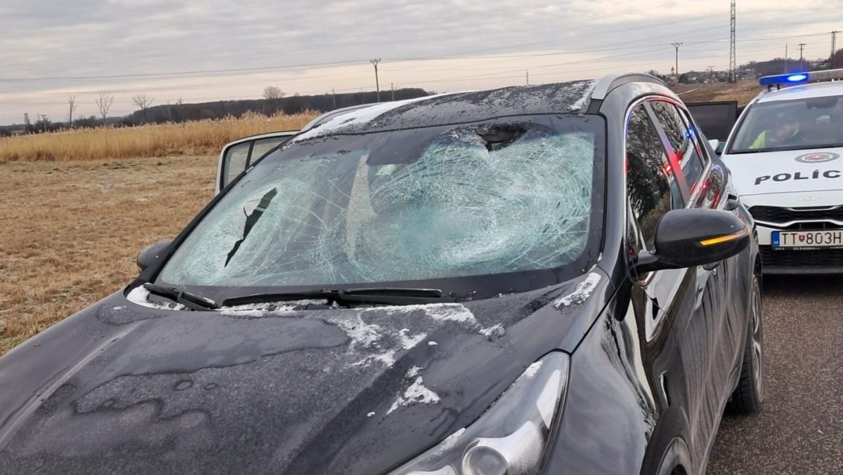 Kus ľadu odletený z kamióna prerazil čelné sklo osobného auta pri Šaštíne-Strážach.