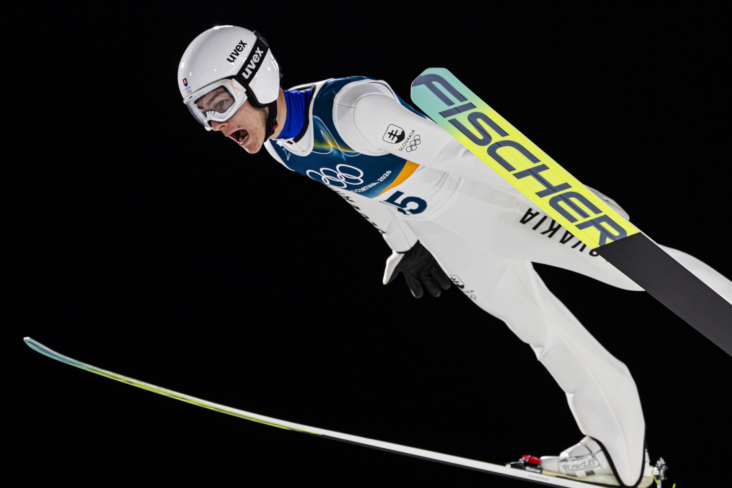 Na snímke slovenský skokan na lyiach Hektor Kapustík poèas 1. kola súae na strednom mostíku na zimných olympijských hrách v talianskom Predazze v pondelok 9. februára 2026. FOTO TASR/SOV - Andrej Galica *** Local Caption *** olympionici zimné olympijské hry reprezentanti úèastníci XXV. zimné olympijské hry 25. zimná olympiáda ZOH OH 2026 ZOH Taliansko Miláno Cortina d'Ampezzo olympijský tím olympijská reprezentácia