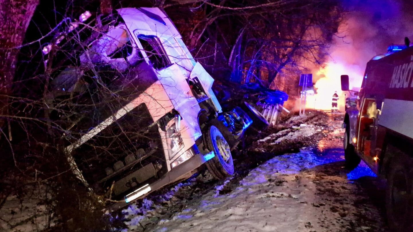 FOTO/VIDEO: Autobusár prešiel do protismeru, uhorel v kabíne. Zrážka s kamiónom na Liptove sa skončila tragédiou