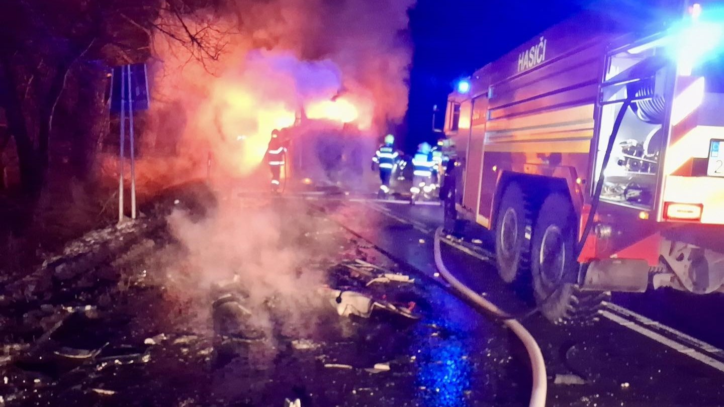 Po zrážke začal autobus horieť.