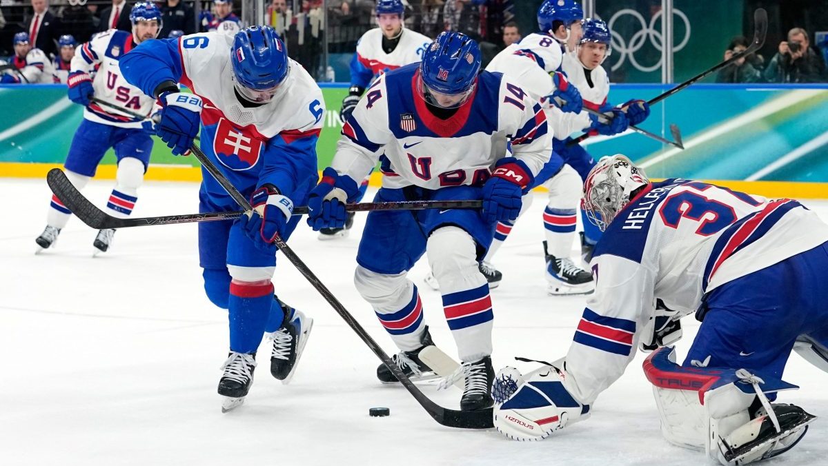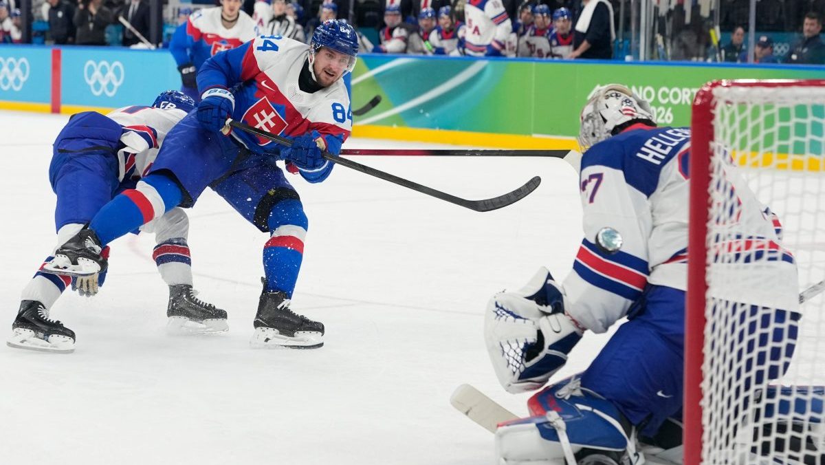 Stanislav Škorvánek v zápase proti USA v semifinále ZOH 2026.