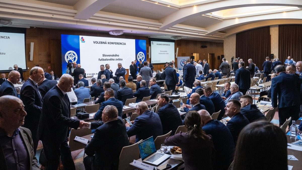 Účastníci volebnej konferencie Slovenského futbalového zväzu (SFZ).