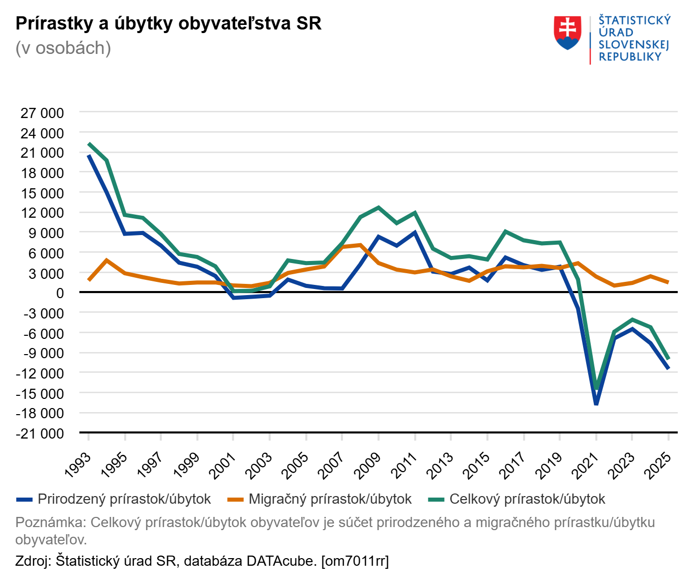 Vývoj v roku 2025 predstavoval druhý najvýraznejší úbytok obyvateľstva v histórii samostatného Slovenska, hneď po roku 2021.